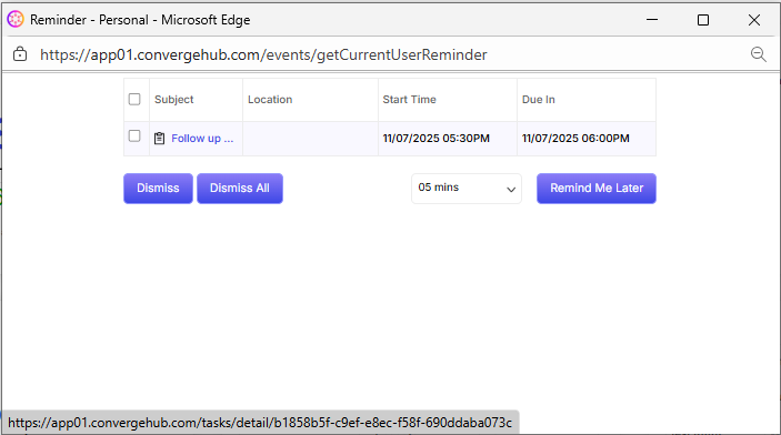 ConvergeHub has a notification icon in the upper-right corner of the application. Clicking on the icon, you will be redirected to the notification listing page, from where you can read the notification reminder message.